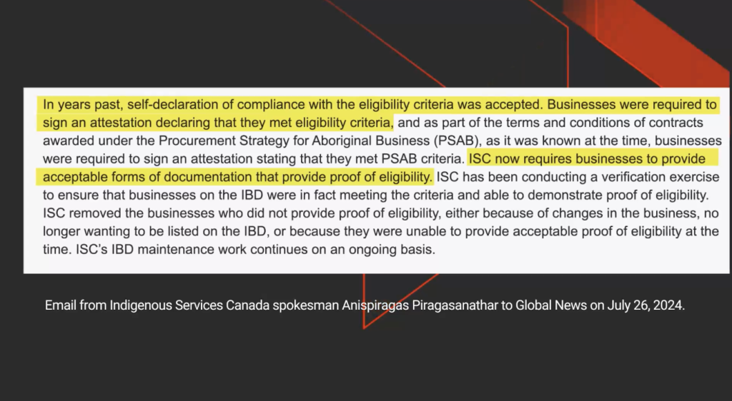 One of Maverin’s former owners, who controlled the company until January 2024, stated that ISC had asked them for proof of Indigeneity when they applied to the PSIB and that Maverin complied with the request.